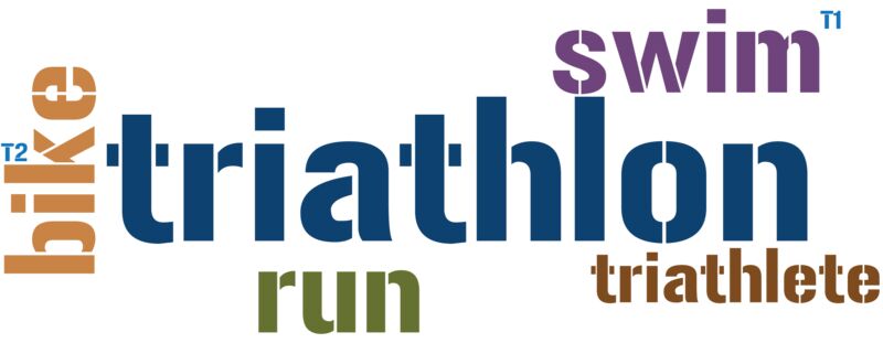 Triathlon Word Cloud - Swim T1 Bike T2 Run